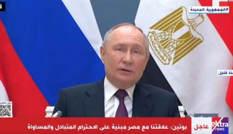 أكد الرئيس الروسي فلاديمير بوتين، استمرار التواصل المستمر مع الرئيس عبدالفتاح السيسي، مشيرًا إلى أنّهما التقيا خلال قمة روسيا وإفريقيا وجرت مناقشات فيما بينهم حول القضايا الأساسية والإقليمية والدولية والعلاقات بين البلدين، فضلا عن تبادل الآراء حول الأحداث التي تجري في فلسطين، والمرتبطة بالمجال الإنساني.