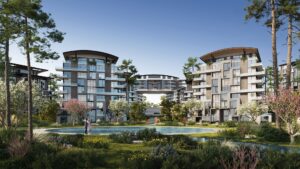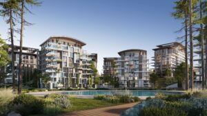 وأضاف حسن، أن التصميمات في الكمبوند تتميز بالانسيابية والتناغم بين جميع التفاصيل سواء كانت على مستوى المباني أوالمساحات المحيطة بها، فقد حرصت الشركة على توفير المساحات الخضراء واللاند سكيب التي توفر إطلالات مريحة، وتوفر طرق واسعة وممهدة تتيح الفرصة الكبيرة في التنقل للسكان بأريحية عالية، وفي نفس الوقت يوجد مسافات كافية بين المباني وبعضها البعض كي يحصل السكان على الخصوصية الكاملة.
