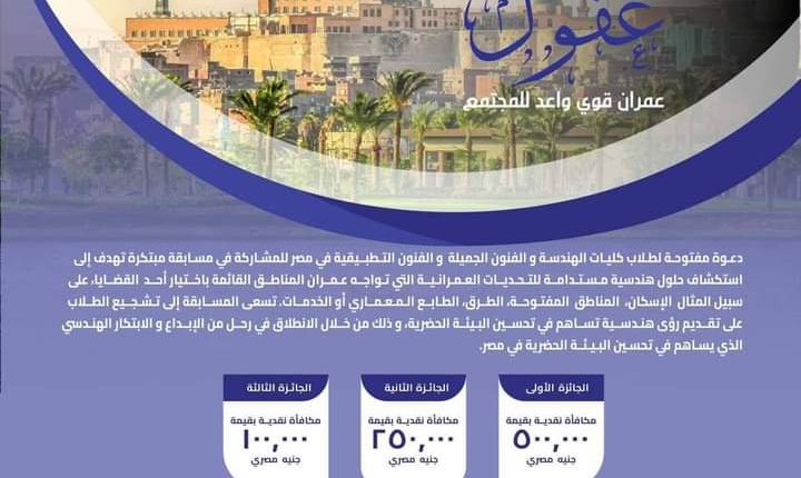 أعلن المهندس شريف الشربينى، وزير الإسكان والمرافق والمجتمعات العمرانية، أن الوزارة أطلقت مسابقة تحت عنوان “عقول” لطلاب كليات الهندسة والفنون الجميلة والفنون التطبيقية بالجامعات المصرية، لاستكشاف حلول هندسية مستدامة للتحديات العمرانية التي تواجه عمران المناطق القائمة، وذلك بالتعاون مع وزاتى التنمية المحلية والتعليم العالي والبحث العلمي، ونقابة المهندسين.