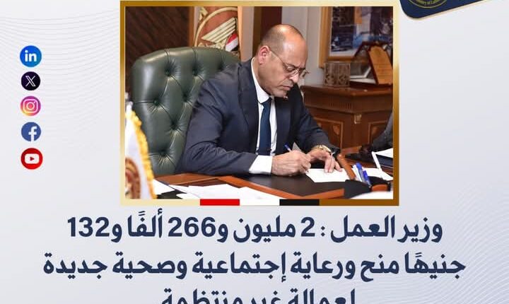 العمل: 2 مليون و266 ألفًا و132 جنيهًا منح ورعاية إجتماعية وصحية جديدة لعمالة غير منتظمة