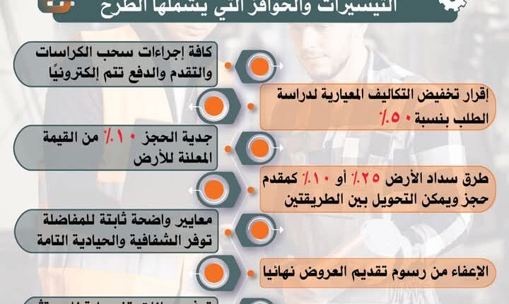 ويأتي طرح الأراضي الجديد في إطار استراتيجية وزارة الصناعة لتسريع وتيرة الإنتاج وتعميق التصنيع المحلي وزيادة الصادرات وتلبية احتياجات الاستثمار الصناعي من الأراضي المرفقة بشكل مستدام وسرعة توفيرها بشفافية كاملة للمستثمرين الصناعيين الجادين لتلبيةً الطلبات المتزايدة على الأراضي الصناعية لإقامة مشروعاتهم،
