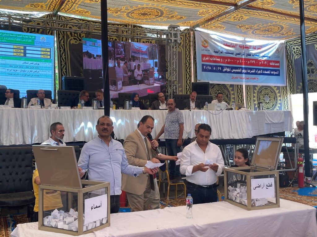 أجريت القرعة اليوم الخميس الموافق 29/5/2025 طبقًا للموعد المعلن عنه بالجرائد الرسمية، وذلك للعملاء الذين قاموا بسداد المقدمات الخاصة بالمساحات التي تمت الموافقة على توفيق أوضاعها.