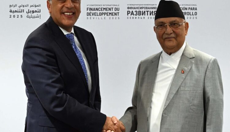 التقى الدكتور مصطفى مدبولي، رئيس مجلس الوزراء، كي بي شارما أولي، رئيس وزراء نيبال، على هامش مشاركته، نيابة عن فخامة الرئيس عبدالفتاح السيسي، رئيس الجمهورية، في مؤتمر الأمم المتحدة الرابع لتمويل التنمية، الذي تستضيفه مقاطعة إشبيلية الإسبانية، وذلك بحضور السفير إيهاب بدوي، سفير مصر لدى إسبانيا.