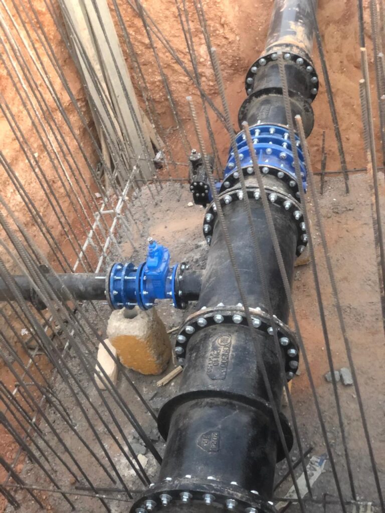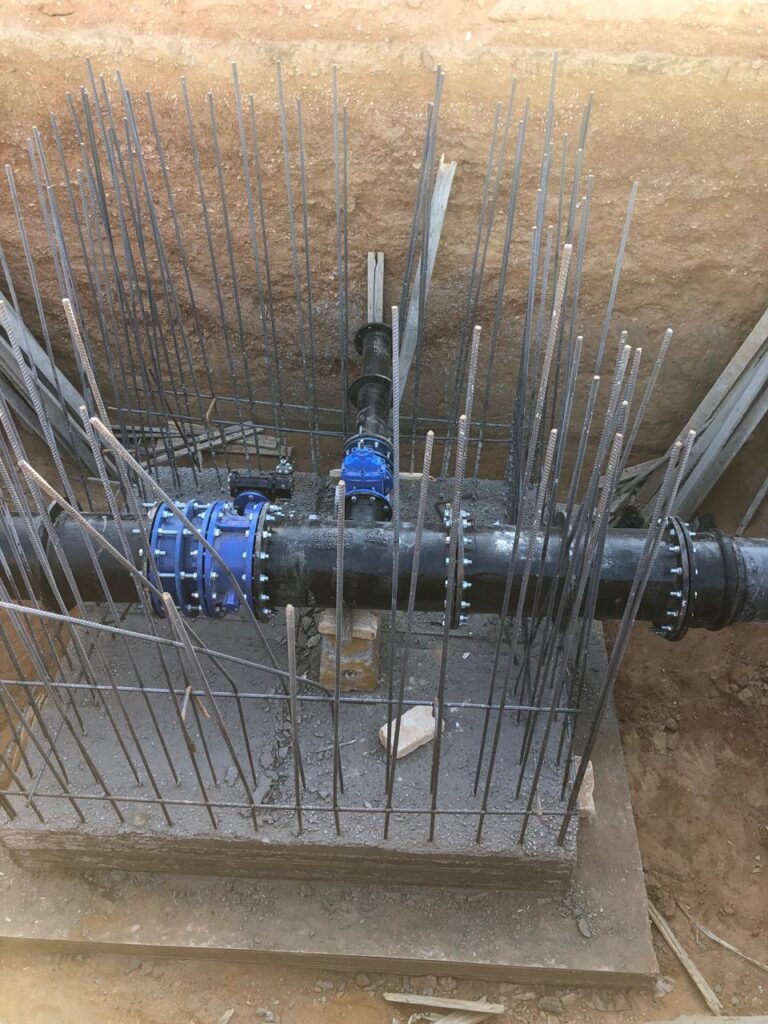 تم الانتهاء من تنفيذ أعمال خط التغذية الرئيسي للمجاورات 1-2-7-8-9 بنسبة 80% من مختلف الأقطار 300 و400 و500 و600 مم، ويهدف إلى توفير المياه بشكل مستمر وآمن للسكان. حيث يبلغ طول الخط ٣٥٠٠ متر
