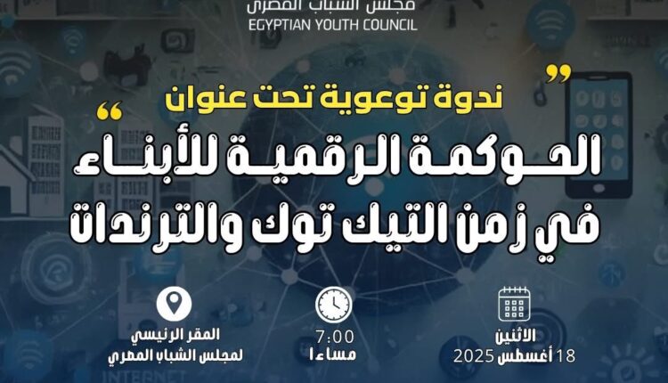 الشباب المصري ينظم ندوة تحت شعار «الحوكمة الرقمية للأبناء في زمن التيك توك والترندات».. التفاصيل