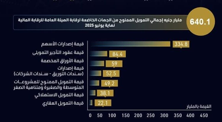 640.1 مليار جنيه إجمالي التمويل الممنوح من الجهات الخاضعة لرقابة الهيئة العامة للرقابة المالية نهاية يونيو 2025