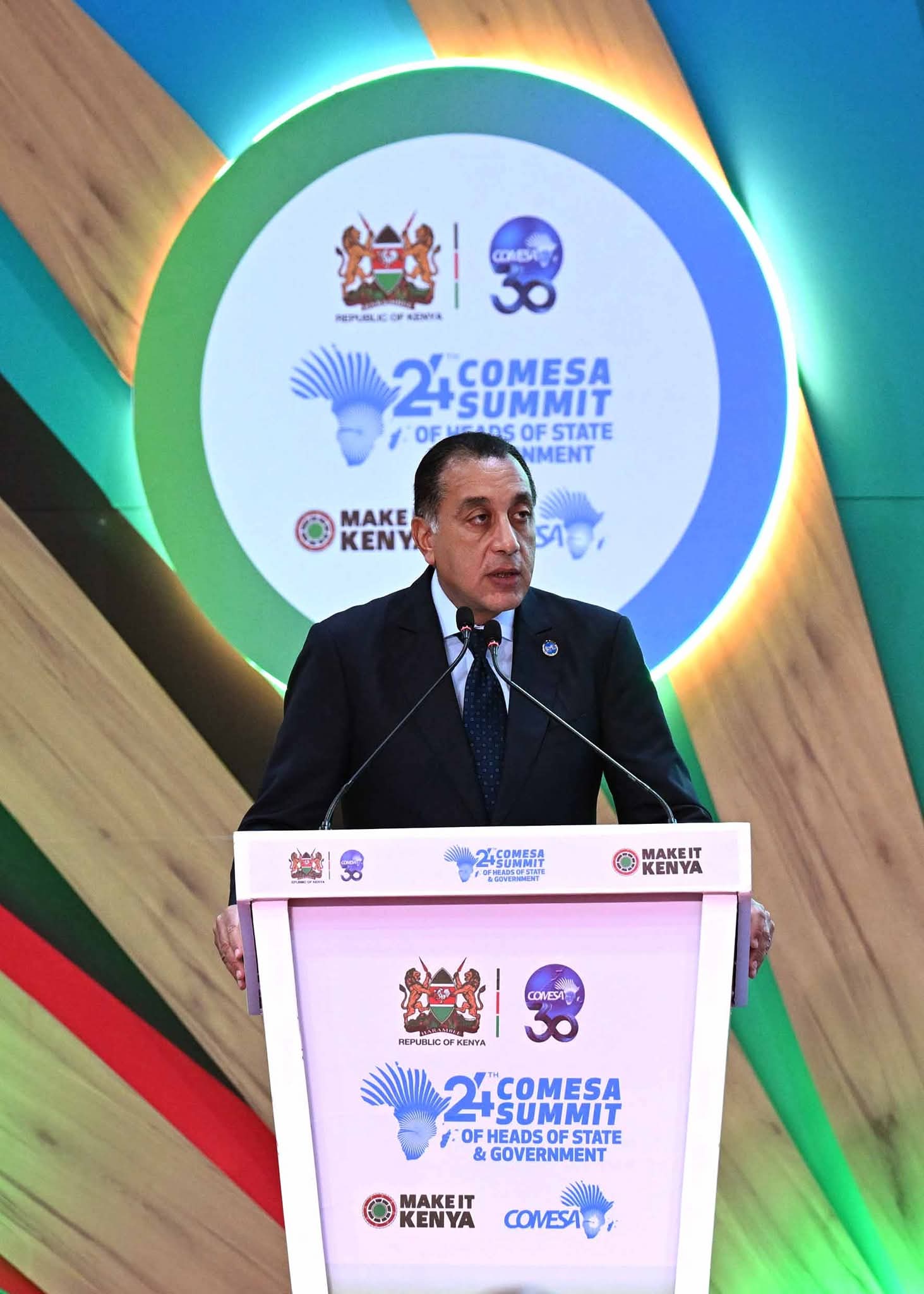 وفي بداية كلمته قال رئيس الوزراء: يُسعدني في البداية أن أنْقِل لكم تحيات فخامة السيد الرئيس عبد الفتاح السيسي، رئيس جمهورية مصر العربية، الذي يُثمّن انعقاد القمة الرابعة والعشرين للكوميسا في العاصمة الكينية نيروبي، ويُؤكد دعمه الكامل لأهداف تجمع الكوميسا، كما يبعث إليكم بخالص تمنياته بنجاح أعمال القمة في تحقيق ما تصبو إليه شُعوبُنا من رفاهية وتقدم.