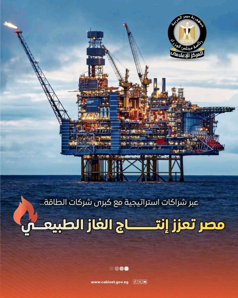 نشر المركز الإعلامي لمجلس الوزراء عددًا من الإنفوجرافات عبر منصاته على مواقع التواصل الاجتماعي، سلط من خلالها الضوء على جهود الدولة لتعزيز إنتاج الغاز الطبيعي عبر شراكات استراتيجية مع كبرى شركات الطاقة.