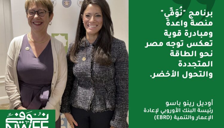 وقالت «نعتقد أن برنامج “نُوَفِّي” يعد منصة واعدة ومبادرة حكومية قوية تعزز توسع مصر في الطاقة المتجددة وتعكس توجهها نحو التحول الأخضر، البنك الأوروبي لإعادة الإعمار والتنمية ملتزم بدعم البرنامج من خلال التمويلات التنموية الميسرة والمنح والتمويلات المختلطة».