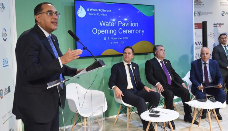 وشهد رئيس الوزراء، افتتاح جناح المياه، الذي تنظمه وزارة الموارد المائية والري، بالمنطقة الزرقاء، خلال الفترة من 8 إلى 18 نوفمبر الجاري، ضمن فعاليات الدورة ال 27 لمؤتمر الدول الأطراف في اتفاقية الأمم المتحدة الإطارية بشأن تغير المناخ COP27 بمدينة شرم الشيخ.