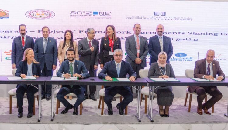 شهد الجناح المصري – على هامش قمة المناخ – مراسم توقيع عدة عقود لمشروعات الوقود الأخضر داخل المنطقة الاقتصادية لقناة السويس، والتي تم توقيع مذكرات تفاهم بشأنها بين المنطقة الاقتصادية لقناة السويس، وصندوق مصر السيادي، وهيئة الطاقة الجديدة والمتجددة، والشركة المصرية لنقل الكهرباء، مع كبرى الشركات والتحالفات العالمية الرائدة في مجال الطاقة النظيفة والمتجددة، حيث تحولت مذكرات التفاهم إلى عقود فعلية تدخل حيز التنفيذ بعد الانتهاء من دراسات الجدوى القانونية والفنية والمالية والتي تم التوافق عليها بين جميع الأطراف، على أن تقام هذه المشروعات داخل منطقة السخنة بالمنطقة الاقتصادية لقناة السويس.