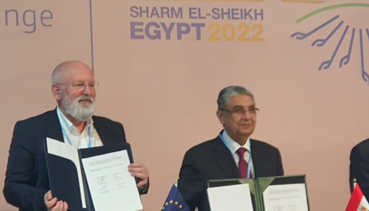 قام الدكتور محمد شاكر وزير الكهرباء والطاقة المتجددة، الأربعاء، بتوقيع مذكرة تفاهم حول استراتيجية الشراكة للهيدروجين الاخضر بين جمهورية مصر العربية والاتحاد الأوروبي، كما شهد توقيع خطاب اعتماد مساهمه المفوضية الأوروبية لدعم محور الطاقة ضمن برنامج NWAFE للماء والغذاء والطاقة بمبلغ يصل إلى أكثر من 35 مليون يورو، خلال مؤتمر المناخ cop27 الذى يعقد بشرم الشيخ .