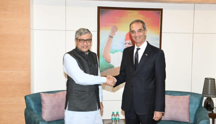 التقى الدكتور عمرو طلعت، وزير الاتصالات وتكنولوجيا المعلومات، مع شرى أشوينى فايشناو، الوزير الفيدرالي للسكك الحديدية والاتصالات والإلكترونيات وتكنولوجيا المعلومات الهندي في العاصمة الهندية نيودلهي.