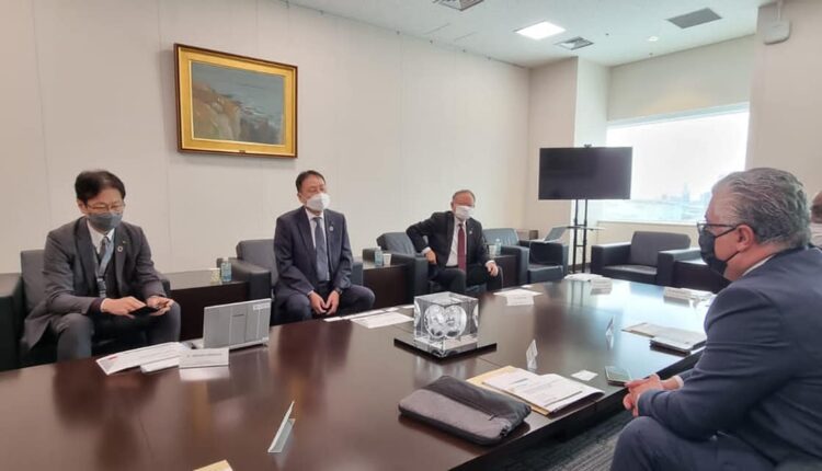 وشهدت الزيارة نشاطاً مكثفاً ولقاءات مع مجتمع الأعمال الياباني، حيث عقد لقاء مع يوشيهنورى كانيهانا، رئيس شركة كاوازاكى للصناعات الثقيلة (Kawasaki Heavy Industries) وذلك بمقر الشركة بطوكيو، حيث ناقش الجانبان الإمكانيات المتاحة للاستثمار في المحاور الأساسية لنشاط الشركة وتم التركيز على أنشطة الهيدروجين الأخضر وإنتاجه من المنطقة وتصديره إلى الخارج، حيث تمتلك كاوازاكى التكنولوجيا والخبرة اللازمة للنقل وكذلك قدراتها التكنولوجية في إنتاج بعض المكونات اللازمة لصناعات الوقود الأخضر وإنتاجه واستخدامه فى استخدامات كثيرة منها إنتاج الكهرباء وتقليل الانبعاثات في الصناعة وتموين السفن بالإضافة إلى صناعة التنقل Mobility.