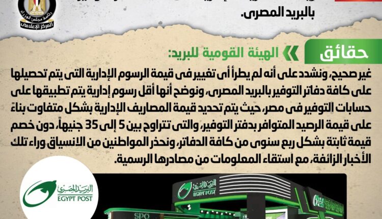 تداولت بعض المواقع الإلكترونية وصفحات التواصل الاجتماعي أنباء بشأن زيادة المصاريف الإدارية على كافة دفاتر التوفير بالبريد المصري.